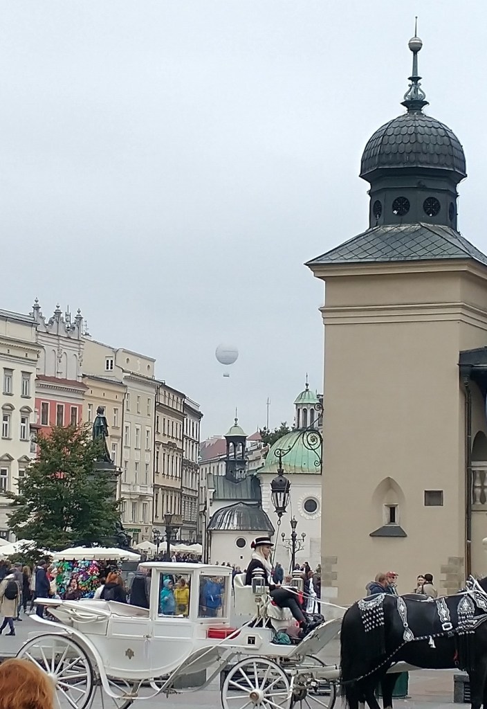 On Saturday I took my first balloon ride! Granted, it’s a tethered balloon, but it goes very high and provides great views. The balloon is full of helium and ascends up to around 500 feet (150m). It was overcast that morning, but sunny clear days are not common around here this time of year, and it least it wasn’t rainy or windy (in which case the balloon wouldn’t have launched). It was quiet in the area, and I was fortunate enough to be the only person besides the pilot. I used Google Translate to chat with him, and he told me that he loved his job. It was perfectly quiet during ascent and descent, and you hardly had a sense of movement if you weren’t looking at a reference point below. Having a balloon ride like this seems like a great attraction in a touristy city. As with all things Krakovian, the price was right: $20. Totally worth it.