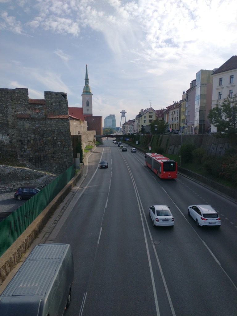 While in power, the Communist government built a big road that slashed right through the heart of the old town. It’s impactful, and you can see in a photo below that it passes just in front of a church. They tore down an old synagogue next door. Now, leaders want to dig a tunnel and move traffic underneath.
