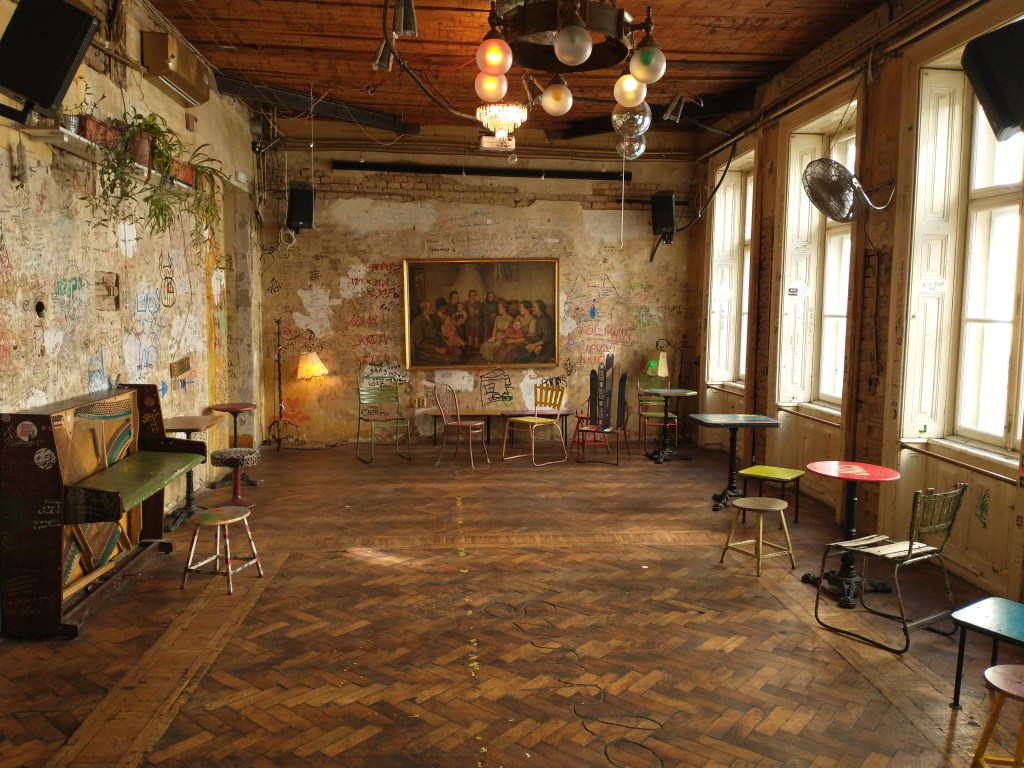 Szimpla Kert (“Simple Garden”) sprawls through an old building that ought to be condemned, and spills out into an equally shoddy courtyard. Surrounding the garden is a warren of tiny rooms—each one different.”
