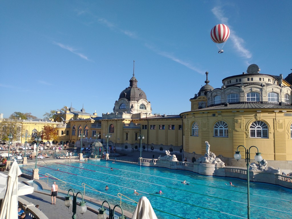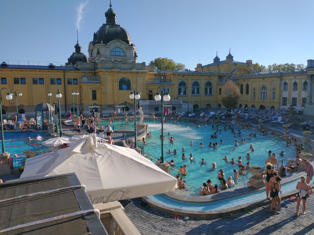 Hungary basically lies on a thin crust over hot springs, and the Hungarians take full advantage of this, with thermal baths offered all over. I paid a visit to Budapest’s most famous (Széchenyi Fürdő), where outside there is a cooler lap pool at about 30°C (86°F), a warmer pool with jets and a “swirl” area at 36°C (97°F), and then the hot pool at 38°C (100°F). Even the hot pool wasn’t as hot as a typical hot tub in the US. But these are clean spring-fed mineral-rich waters that get pumped in and then flow out, and the locals believe them to be therapeutic. It was crowded when I visited. The weather was really pleasant though, with lots of sun. It was warm enough to just get out of the pool and lie on a chair in the sunlight. All the baths in Budapest are apparently government-run, part of the healthcare system! They let tourists visit too, as they’re bringing in a lot of money.