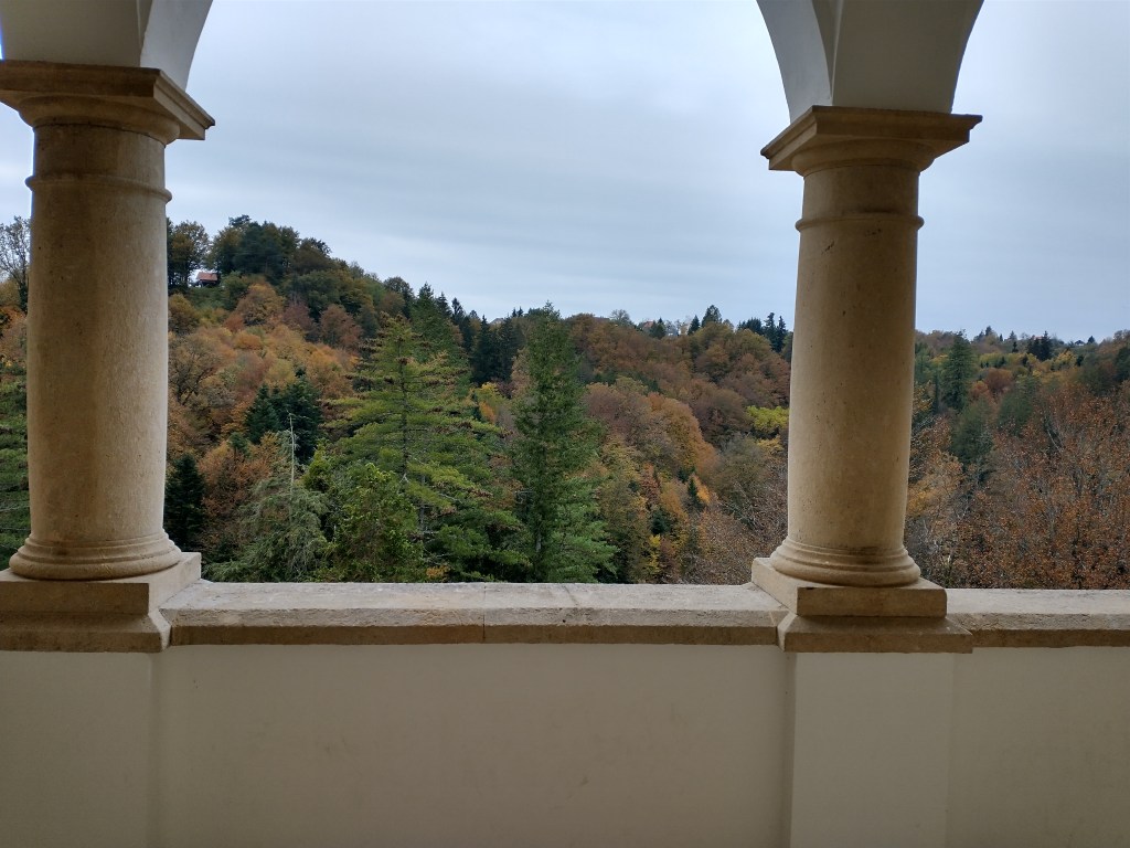 On Saturday I rented a car and drove up north of Zagreb to explore a bit. First I visited an excellent and thorough museum about a large Neanderthal find (the largest Neanderthal bone collection in the world), then after a drive through some beautiful autumnal countryside scenery in the mountains, I explored an old hilltop castle.