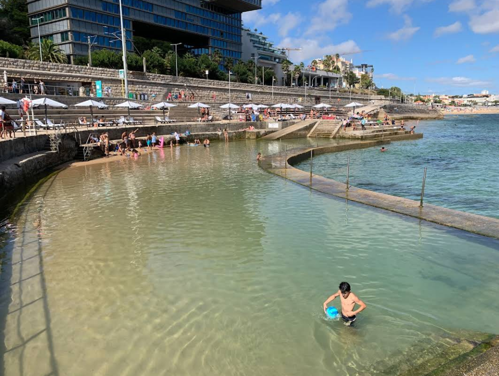 On Monday I took an afternoon trip out to suburb resort towns Cascais and Estoril, which are on the Atlantic Ocean. In walking between the two along a beachfront promenade, I was surprised to see how high the seas were and how the waves were often crashing over the promenade itself. It wasn’t windy or stormy, so I don’t know what was going on. Almost the entire walkway was wet and sandy. No laying out on a beach that day!