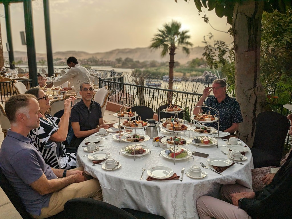 In Aswan we visited another Egyptian temple, took a felucca (Egyptian sailboat) ride, and had high tea at the Old Cataract Hotel, where Agatha Christie penned Death on the Nile. The hotel, its grounds, and its views are all breathtakingly beautiful. But despite all the years of high tea being served at the hotel, the experience was a bit of a cluster-fudge, especially for the Brits, who have a specific concept of what high tea should entail. It kicked off with a small sandstorm (that wasn’t the staff’s fault), which made it all the more memorable.
