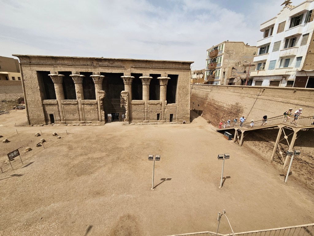 After flying back from Abu Simbel to Aswan, we traveled back up the Nile and stopped briefly in the town of Esna, where a beautiful ancient temple (for Khnum) was dug out of the ground after being buried in the Nile’s flood silt over millennia. US taxpayers helped with the extraction and restoration of the temple and the town through USAID. It was refreshing to hear about Americans as the good guys.