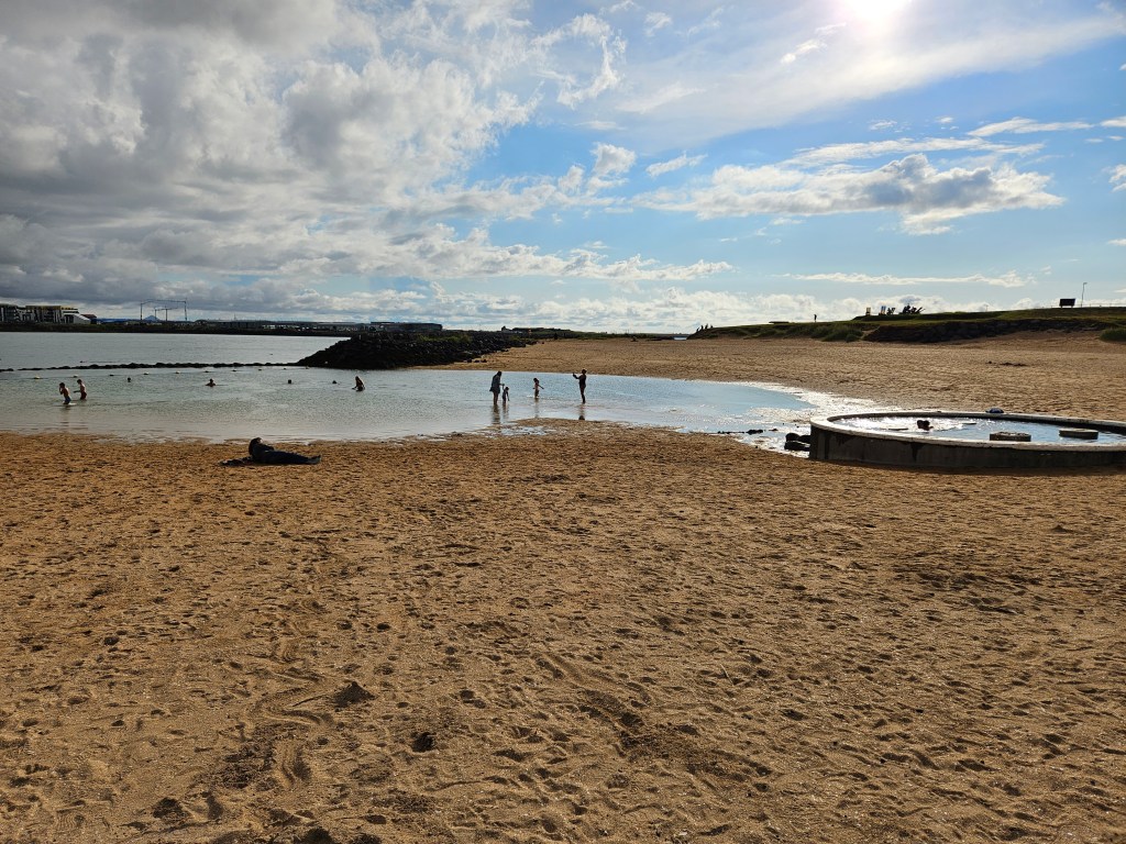 Many years ago I worked for an Icelandic company based in Montreal, called OZ. We provided rich mobile messaging solutions before they were cool, haha. Nokia acquired the company in 2008, which is the same year that Iceland had a huge banking scandal and economic collapse. The original Icelandic founders walked away with a nice payout from the sale of OZ and returned to Iceland from Canada with money to spare in a country that didn’t have much anymore. For example, the former OZ CEO later founded popular budget carrier WOW Air (now defunct). He’s since been involved with various other enterprises in Iceland, such as Hvammsvik Hot Springs, a new addition to Iceland’s many geothermal lagoons and pools catering to tourists, and Time Out Magazine’s #1 thing to do in 2023. Reykjavik has several legacy city pools that aren’t as elaborate or expensive as those directed more to foreigners, including one at a beach, as shown below. Even the sea water right at the beach itself is warmed with geothermally-heated water.