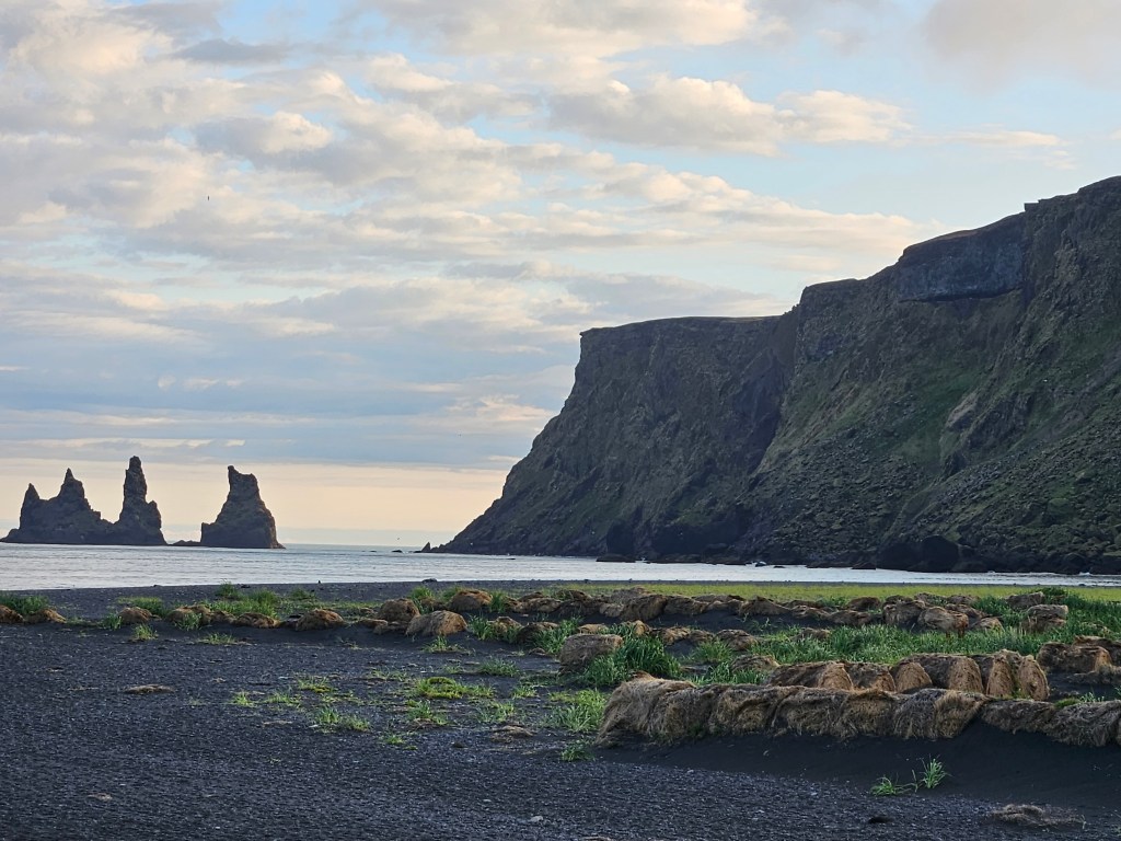 The Icelandic language retains more of a relationship to Old Norse than do other Scandinavian languages, such as Norwegian. Modern Icelanders can even read the old medieval sagas without too much trouble. Their language hasn’t evolved as much as other Scandinavian languages which were influenced by other European languages, such as French. And even today, a modern foreign term will normally be described with a newly-constructed Icelandic compound word. That said, there are some interesting expressions that seem related to English or at least originate from common Germanic language roots. For example, “hæ” is pronounced as “hi”, and it has the same meaning. Similarly for “bæ”. My favorite Icelandic expression is “bless bless” for “bye bye” — I heard this one a lot.