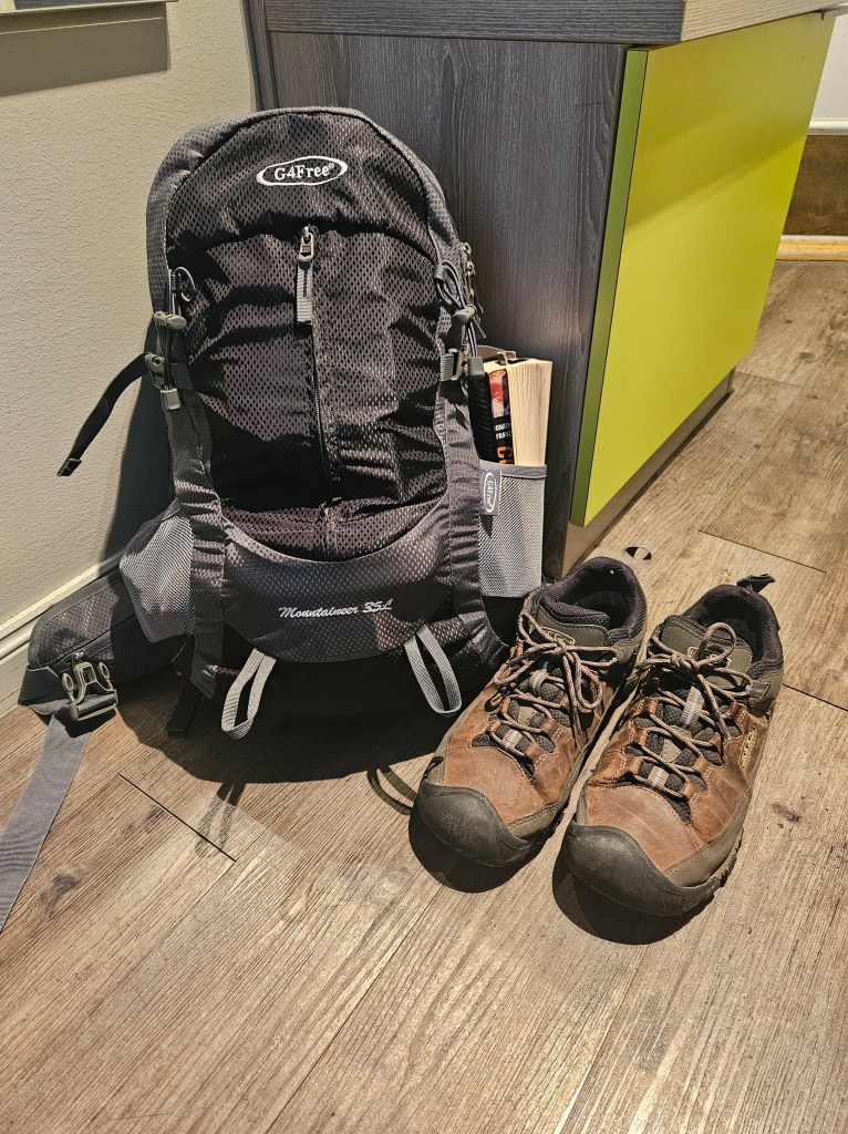 Today’s bonus insight: I must admit that I’m rather proud to have been able to pare down my travel items to the point that I can use just this 35-liter backpack (plus my jackets, which aren’t shown) for a 7.5-week trip in the wintertime in northern Europe! Three long-sleeve quick-dry shirts, two dressier long-sleeve shirts, three pairs of jeans, three short-sleeve quick-dry shirts, three pairs of long wool socks, one pair of short sport socks (to double up when needed), one pair of long-john pants, four pairs of underwear, toiletries, large laptop, laptop charger, phone charger, backup phone, MacGyver kit, snacks, two books, notebook paper, sunglasses, two pairs of reading glasses, phone charger, watch charger, supplements, night guard, a mini-backpack (yes, there’s a backpack in the left pocket of the larger backpack), extra currency, waterproof backpack cover, and more. Granted, I must wear some of this stuff to get the rest into the backpack, haha. One key is a single pair of shoes. The conveniences of the single backpack way outweigh the downside of less stuff — namely, I don’t have to drag a suitcase through the slush, puddles, or snow; I keep my hands free when transitioning between places; I don’t have to pay for a checked bag; I keep the bag in my sight when in planes, trains, and buses; and it’s just simpler in general. I do have to wash clothes with regularity, but I’d have to even if I brought more.