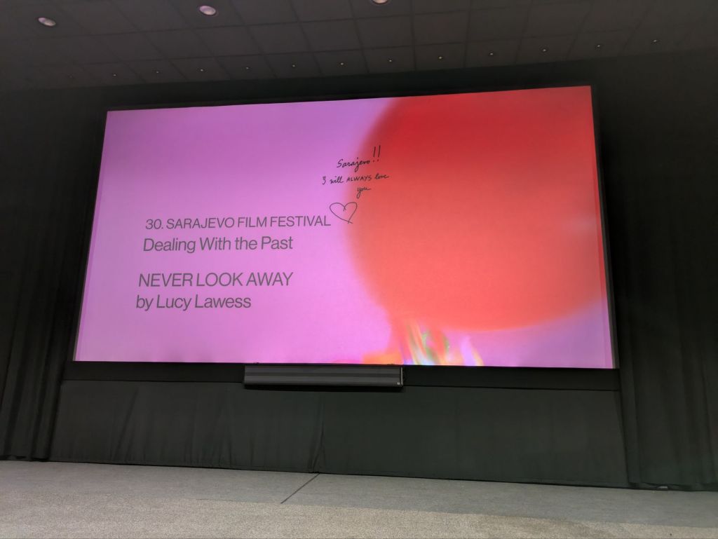 Meg Ryan and other American actors were in attendance this year, for which my Airbnb host seemed immensely proud. There were so many films showing across two dozen locations (!), that even though I only had Thursday evening and Friday to be able to see a film, my choices were almost overwhelming. After some research, including using the film festival’s own mobile app, I found a film with a direct connection to Sarajevo itself. It’s called Never Look Away, a powerful documentary about the life of Margaret Moth, a CNN camerawoman who actively sought to capture images in conflict zones around the world. She often put herself in harm’s way, and it finally caught up to her in Sarajevo during the siege, where she was shot in the jaw by a Serb sniper. She somehow survived, but even after 25 surgeries her face remained noticably disfigured, and her speech was very difficult to understand because she had lost her teeth and half of her tongue in the incident. Her fortitude was admirable, and she even returned to Sarajevo just six months later, bravely inquiring with the Serbs controlling entry back into the city, “Which one of you assholes shot me?!” She jokingly told her CNN comrades to help her find her shattered teeth in the street. The documentary includes interviews with many important people in her life, including her friend Joe, who for years sought someone to make a film of Margaret’s life after her death from cancer in 2010. He finally connected with the New Zealand actress Lucy Lawless, who made the film. Lucy is a fellow Kiwi, like Margaret was.