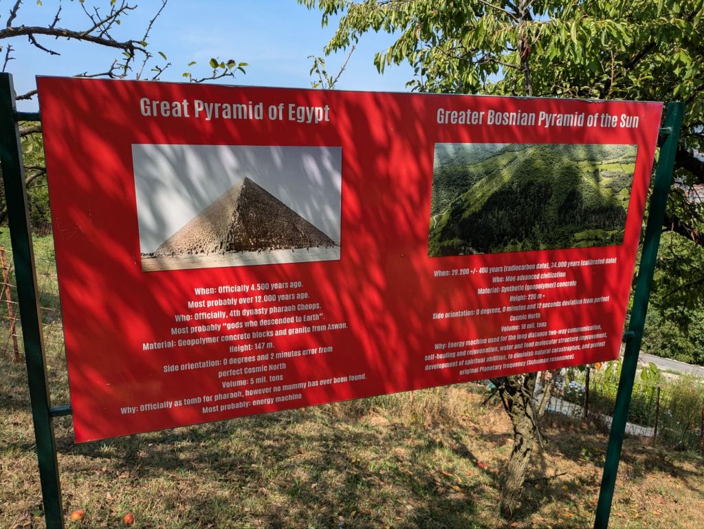Just north of Sarajevo is a collection of hills which a Bosnian-American touts as actually being ancient structures, mainly pyramids. In particular the largest hill is said to be the Bosnian Pyramid of the Sun. While I was of course suspicious of these claims, I wanted to have a look for myself to see what the fuss was about, and to see how realistic it was that these are actually ancient pyramids that predate Egypt’s by tens of thousands of years. Let’s just say that I’m skeptical. But it was interesting to see how pyramidal in shape these hills are, and there has been a decent amount of work showing how well aligned the hills are with each other, along with how well aligned the main hill is with true north. While most scientists are convinced that the hills are all natural formations, there are some scientists from around the world who are believers. It would be truly remarkable if these were man-made, of course. I’m not sure what evidence would be required to create a consensus around these having been created by humans.
