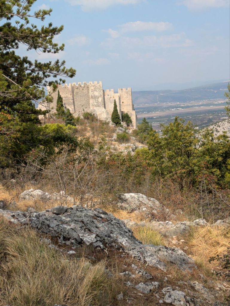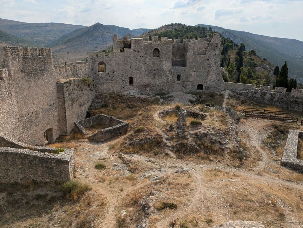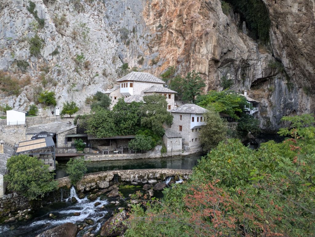 On the way back from Neum to the Sarajevo airport, I took a short detour to visit a couple of sites in the town of Blagaj. Blagaj Tekke is a monastery built for the Dervish, an Islamic Sufi fraternity. It’s an old structure from the 1500s, located at the source of the local river. The Blagaj Fortress is perched on a cliffside above the town. I used my mapping apps to find my way up, but I lost the trail along the way and so ended up climbing and scrambling up treacherous scree. The original fortress was built in the 300s, and it was rebuilt in 948 – it’s an old one! There are excellent views from the walls, and no one else was there during my visit.