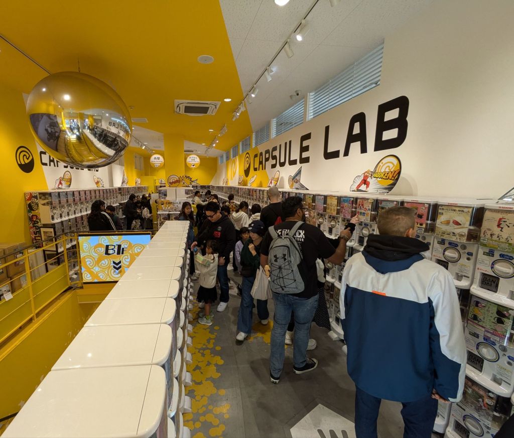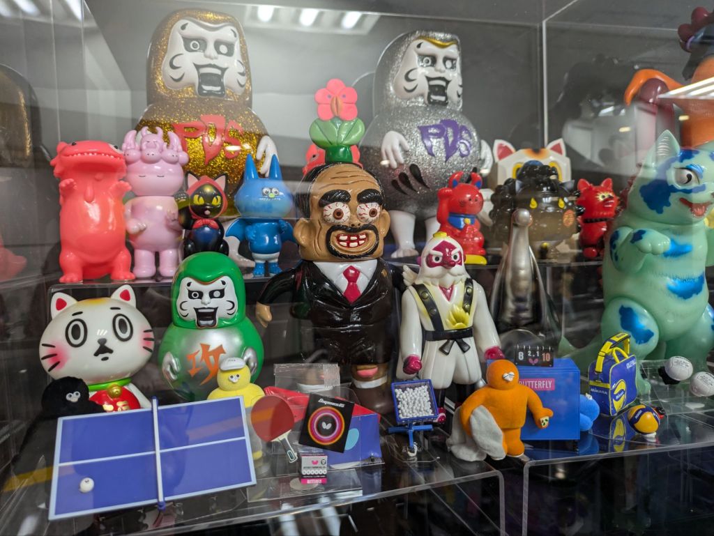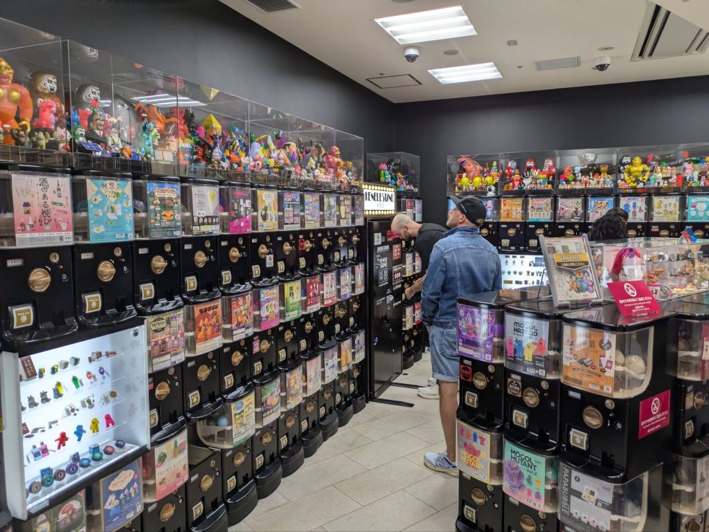Another popular plastic-heavy item is “gashapan,” a little plastic toy or model contained within a plastic capsule, obtained at a price from a dispensing machine. Each machine focuses on one theme and contains multiple capsules, with there being various toys in a set per theme. For example, Ben found a table-tennis-themed dispenser and paid to buy three capsules. Luckily for him, each capsule contained something different (he could have hit a repeat item). There are Hello Kitty machines, Harry Potter machines, Pokemon machines, you name it. These capsule toys are so popular that you can find one or more dispensing machines at various locations around Japan. They are very common, and there are even large stores that contain nothing other than dozens or even hundreds of gashapan machines! Popular tourist destinations will even have sets made that revolve around a theme associated with those destinations!