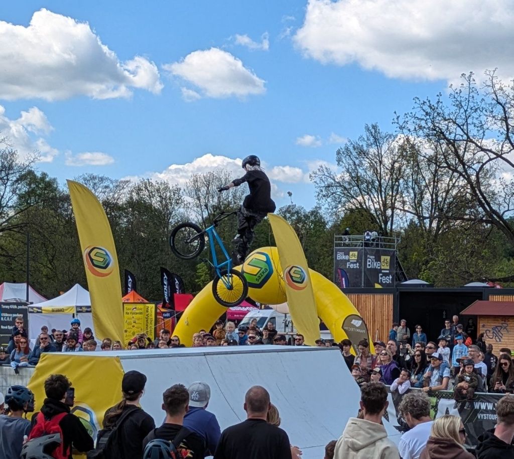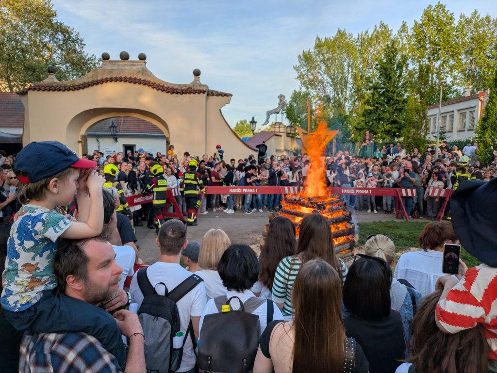 There are always many different events around Prague every weekend, at least this time of year. It’s fun just wandering around to various parks (of which there are so many) and experiencing the gatherings. There are food festivals and concerts, of course, but I also ran into a big bicycle extravaganza — it was a ticketed event, and I didn’t pay to get in, but even from the outside it was possible to watch some of the competitions such as BMX bike ramp jumping and stunts. Plus, May 1 is a public holiday in Czechia (labor day), and the city was packed with fun celebratory get-togethers. The night before is called “Witches’ Night” or “Walpugis”, which officially fetes the springtime. Bonfires are lit to ward off evil spirits, and little kids and adults alike dress up in witch costumes. Here are some sample photos: