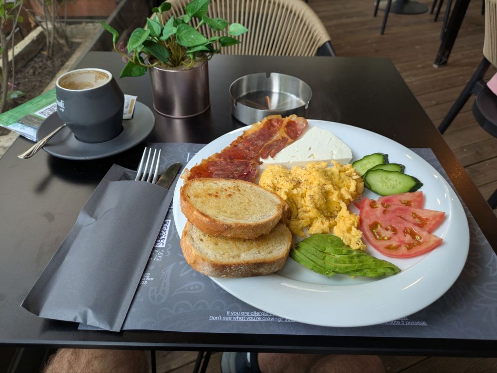– Overall I’ve enjoyed the food in Albania. It’s quite meat-focused, though salads are available as well. As elsewhere in the Balkans, burek (cheesy, greasy dough with various fillings offered) is popular, though I don’t like it. As mentioned in a previous post, Italian food is widespread. There are many options that seem Greek in origin, such as cucumber yogurt sauce. The red wine is tasty, and there are various bread and cornbread offerings.