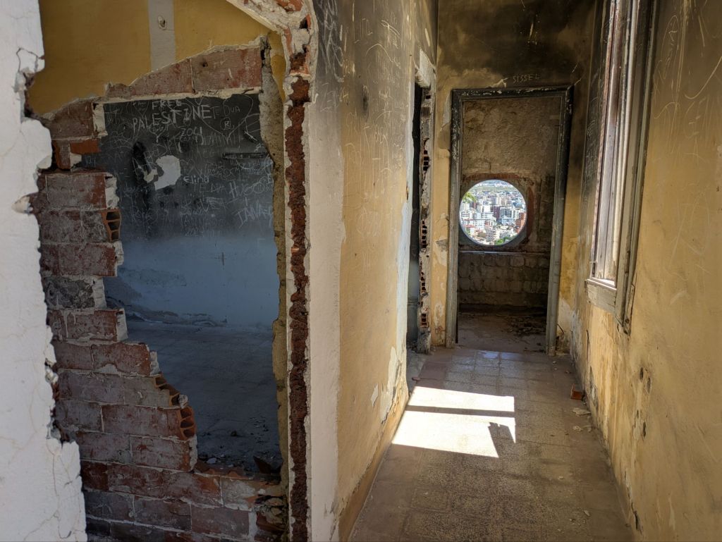 I have found that urban exploration (urbex) feels exhilarating and is always interesting. Readers may recall an earlier post from Croatia where there’s a military tunnel system in a mountainside overlooking the sea where one can explore down in its depths for free, BYOF (bring your own flashlight). The Albanian villa is also open for exploration, but with some legitimacy, albeit without perceptible safety considerations. It’s 300 lek or 3 euros to enter, and one pays a scruffy gent who appears like he’s been sleeping by the entry gate for at least a few weeks. He even gives you an official ticket in return! But I tell you, it doesn’t feel like one should be entering this building. I did so anyway, because I figured that they wouldn’t let us go in if it was overly unsafe, right? 😜