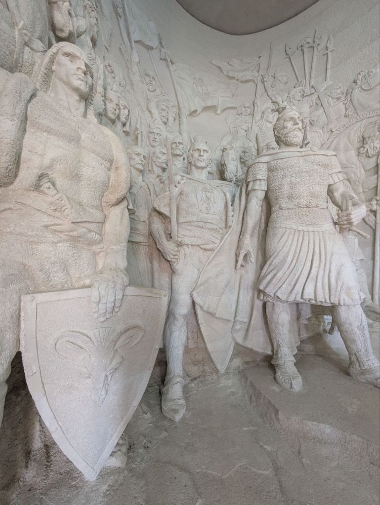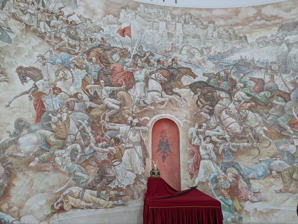 While King Zog doesn’t get much respect, Albania’s national hero is most definitely an Albanian military commander called Skanderbeg, who very successfully greatly delayed Ottoman expansion in the Balkans through numerous victories on the battlefield, and is thought to have fought long enough to prevent the further incursion of the Ottomans into the rest of Europe. “He is honored in modern Albania and is commemorated with many monuments and cultural works. Skanderbeg’s military skills presented a major obstacle to Ottoman expansion, and many in Western Europe considered him to be a model of Christian resistance against the Ottomans.” (Wikipedia) One can find full statues and busts of Skanderbeg across Albania, and there are monuments to him all over Europe and even the world. I’m embarrassed to admit that I don’t recall having heard of him before this trip to Albania, but he’s clearly an important historical figure for Christian Europe.