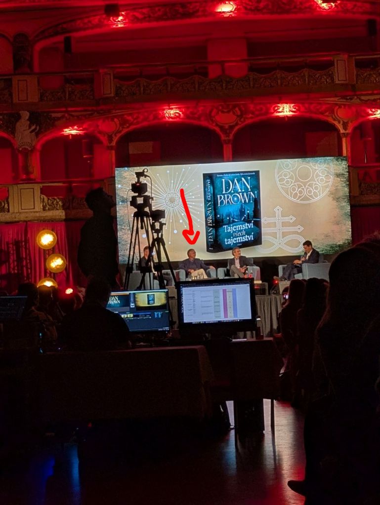 Dan has visited Prague several times before, and he even gave his five favorite locations in the city to the NYT. He visited on September 18 for a book tour stop in a fancy events hall in Prague with well over a thousand fans of the author, including me and a friend. We purchased the cheap standing tickets, but someone my friend knew called us over right before Dan came on stage so we could sit in a couple of unclaimed seats closer to the front.
