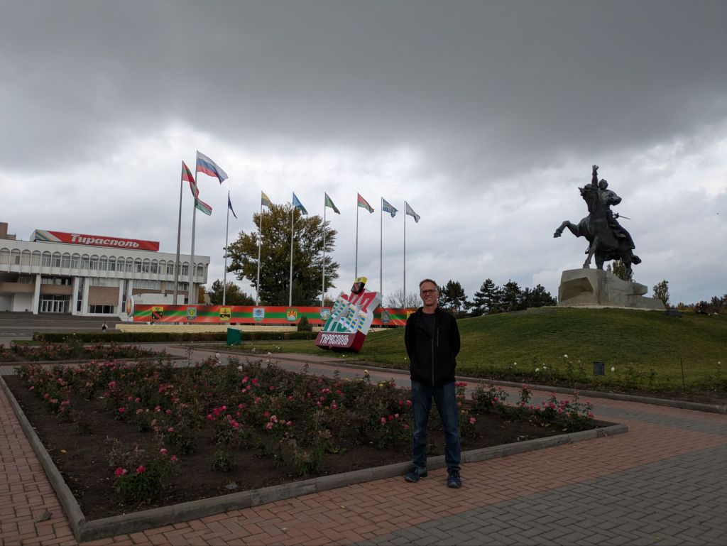 That’s where my story begins… The highlight of my week and a half in Romania and Moldova was definitely a day trip to Transnistria, or “Pridnestrovie”, as the locals insist it be called. Having grown up during the Cold War, and being quite frightened by the prospect of nuclear war with the Soviets, it felt daring to visit a state (even if unrecognized) which still keeps the hammer and sickle on its flag! (It’s the only one in the world.) I’ve by now been to numerous formerly communist countries, including a handful of former Soviet republics, but this felt different because it’s the only formerly communist place I’ve visited where the majority wants to maintain strong ties with Russia (besides Russia itself, haha). Communism, we can clearly acknowledge, was a terrible failed experiment. I understand that there are some aspects to those decades which seem decent in hindsight. But good riddance to the terrors, atrocities, and just general unsustainability of it all. And while Transnistria isn’t actually still communist (and they seem to actually be controlled by a company), there is much nostalgia for the USSR years, for sure. Russia continues to keep several hundred troops in Transnistria, officially as “peacekeepers.” And frankly, their presence does keep the peace. I saw some of these soldiers with their white, blue, and red horizontal striped flag patches. Transnistria functions as a self-governing entity, with its own government, flag, border control, currency (the Transnistrian ruble), vehicle registration, postal service, and even passports. No one can travel outside of Transnistria with that passport, other than to Moldova, haha. And the vehicle registration and license plate doesn’t allow for crossing into anywhere except Moldova. It’s a big commitment for systems that hardly function other than locally. But Transnistria maintains close economic and cultural ties with Russia, with a heavy dependence on Russian energy and subsidies.
