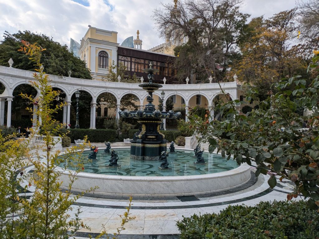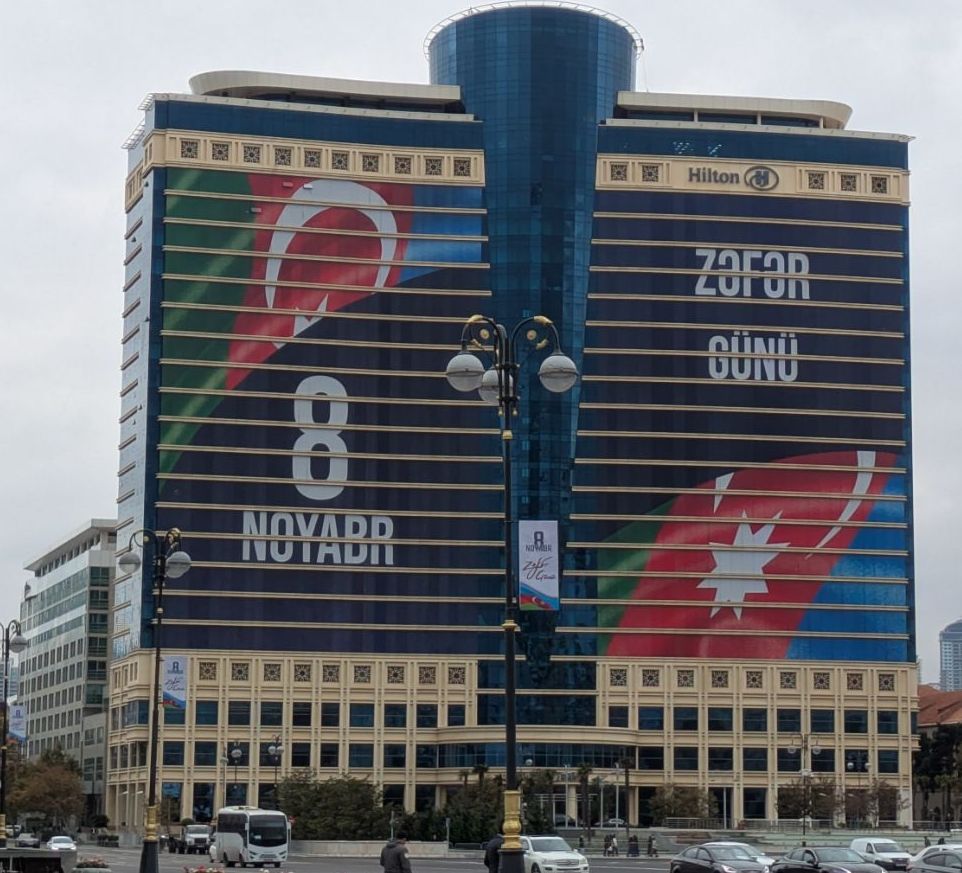 Corruption-wise, consider that the current president (Ilham Aliyev) celebrated 22 years as president (so far) in October of this year. And his father was president for over 10 years before that. And the current president’s vice president is also his wife, haha. Supposed democracy in action, but in the 2024 election Aliyev won with over 92% of the votes. Amazingly popular? His father certainly is now, by choice or not. The “Heydar Aliyev” name is seen everywhere – on the fancy airport, a cultural center, a palace, and many more. Difficult to get away from the guy. During one ride on a tour bus I saw a three-sided billboard with a giant photo of the current president on each side – no words, just his picture three times. That’s what democratically-elected folks do, right?