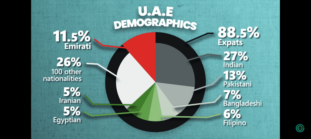 Historically the emirates were sparsely populated given the harsh conditions which don’t support life well. There are in fact no major bodies of fresh water in the entire country. Only in modern times with electricity, air conditioning, and water desalination has it been feasible to support a large population. But to enable the fast growth that the country is experiencing (Dubai and Abu Dhabi primarily), the UAE has had to rely on immigration, and in fact native citizens now only number around 11% of the total population! Millions of foreigners, primarily south Asians, have flocked to the UAE to help to construct all the countless new buildings and to work in the huge service industry. There are way more Indians than Emiratis in the country.