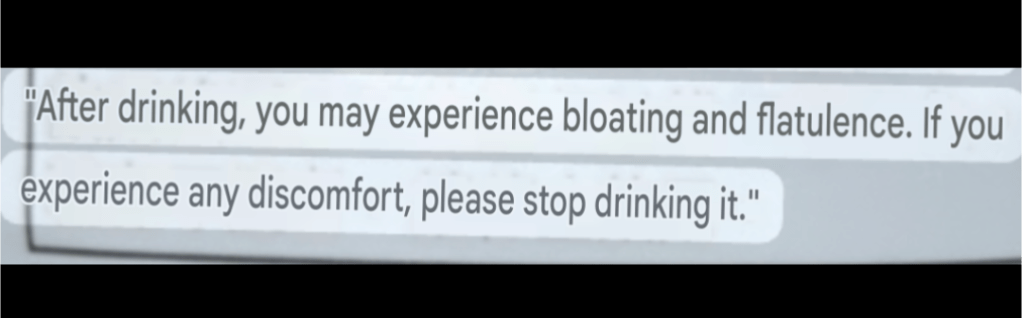 Google Translate feedback for a tea bottle label, captured after I had already drunk the entire bottle’s contents!: